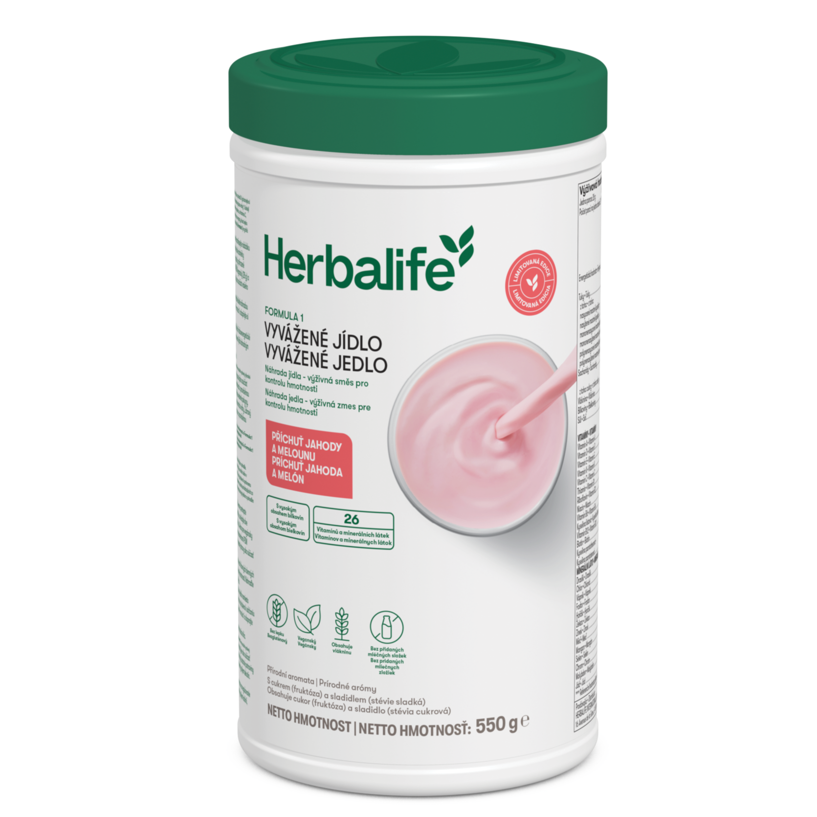 Herbalife Formula 1 – Jahoda a Meloun dodá vášmu tělu energii ve výjimečné příchuti jahody a melounu. Tento lahodný a výživný koktejl je ideální náhradou jídla – ať už si ho dopřejete k snídani, obědu nebo večeři.